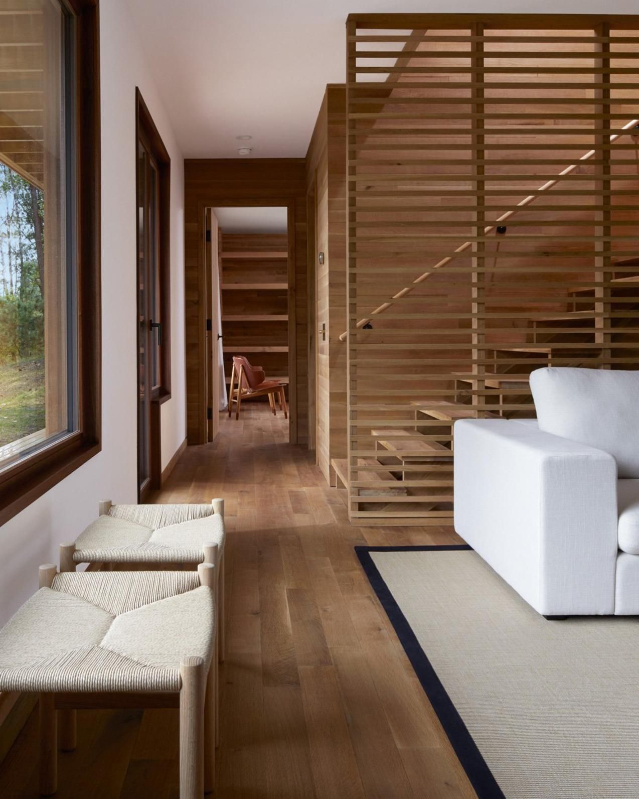 A unifying factor in the project? Oodles of wood. The house itself, by Lang Architecture in New York, had already prioritized another key precept of Nipponese beauty: local materials. White oak, plentiful in the Catskills and on the property, clads the walls, floors and ceilings. Ms. Keck made even more use of the humble lumber. “We did a ton of built-ins—walk-in closets, shelves, desks, bunk beds—that all seem to be growing out of the house because we used white oak where the architect had.”